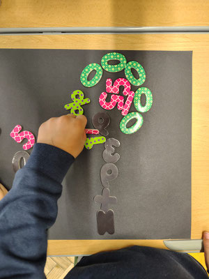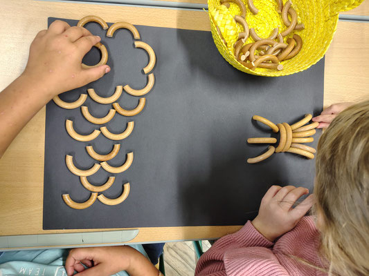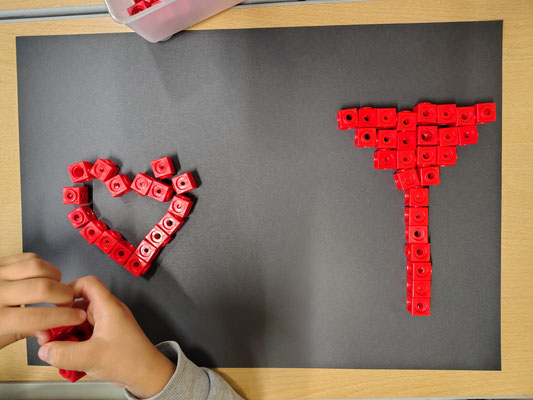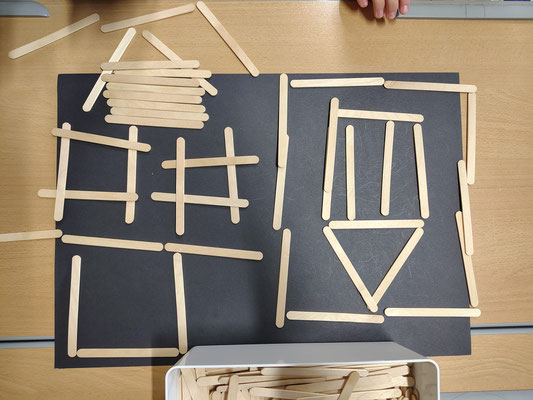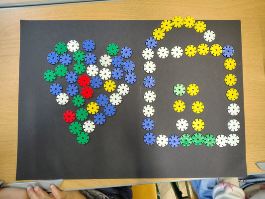 Aus verschiedenen Gegenständen in der Klasse legten wir in Partnerarbeit Kunstwerke.