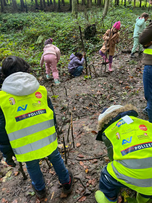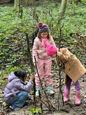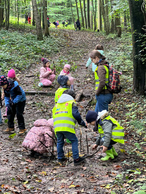 Unser erster Wandertag brachte uns in einen nahegelegenen Wald. Dort suchten wir Schätze des Waldes mit dem Waldbingo und erstellten unsere eigenen LandArt-Kunstwerke. Wir entdeckten einige Tiere, sogar einen Feuersalamander!